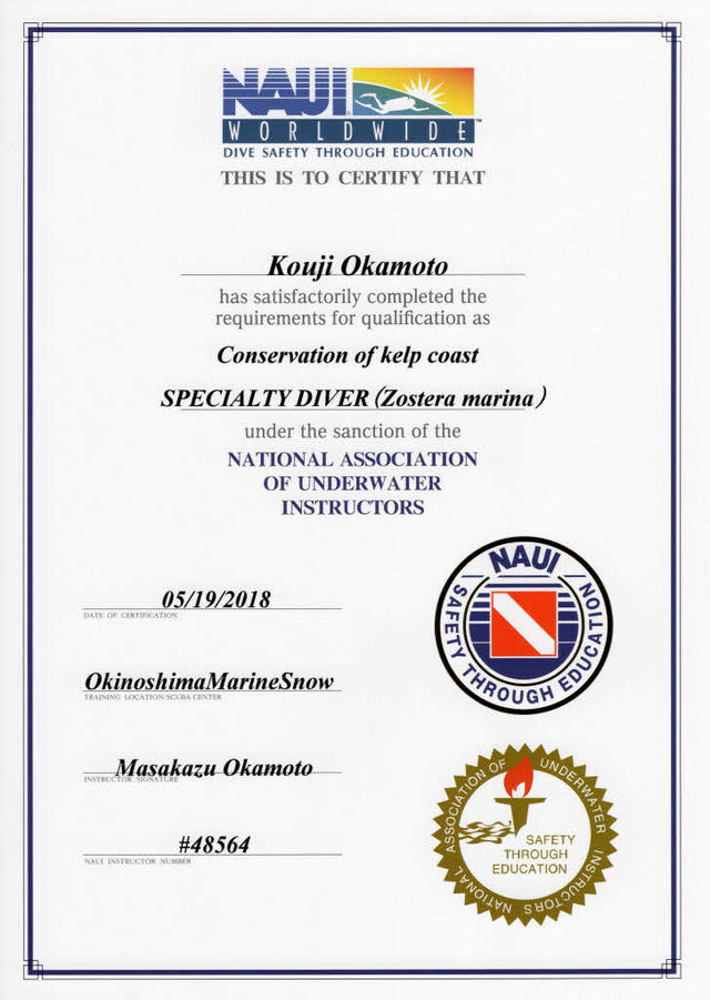 千葉県館山市の沖ノ島海水浴場でアマモの苗植えイベントに合わせ藻場再生プロジェクトでConservation of kelp coast(2)【Zostera marina】の講習を行いました。 2018/05/19|千葉県館山市の沖ノ島ダイビングサービスマリンスノー