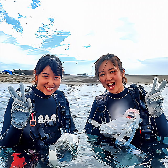 季節や海況によっては透明度が高く、明るい砂地と穏やかな水域が広がります。視界が開けている水中は圧迫感が少なく、初めての方や久しぶりの方でも落ち着きやすい環境です。